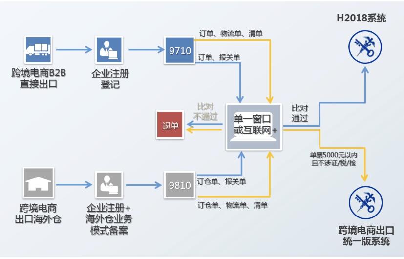 # 对于单票金额在人民币5000元(含)以内,且不涉证、不涉检、不涉税的,企业可以通过【H2018通关管理系统】或【跨境电商出口统一版系统】办理通关手续。